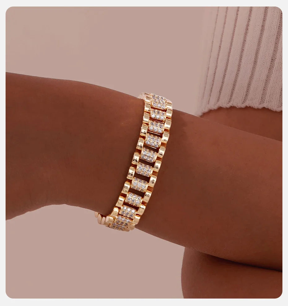 Vnox Block Chain Bracelets For Women Cubic Zirconia Inlay, Gold Plated Fashion Charm Jewelry Gifts To Girlfriend