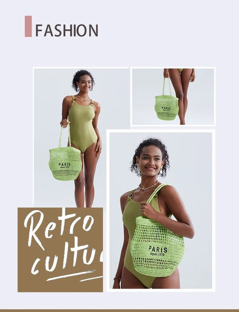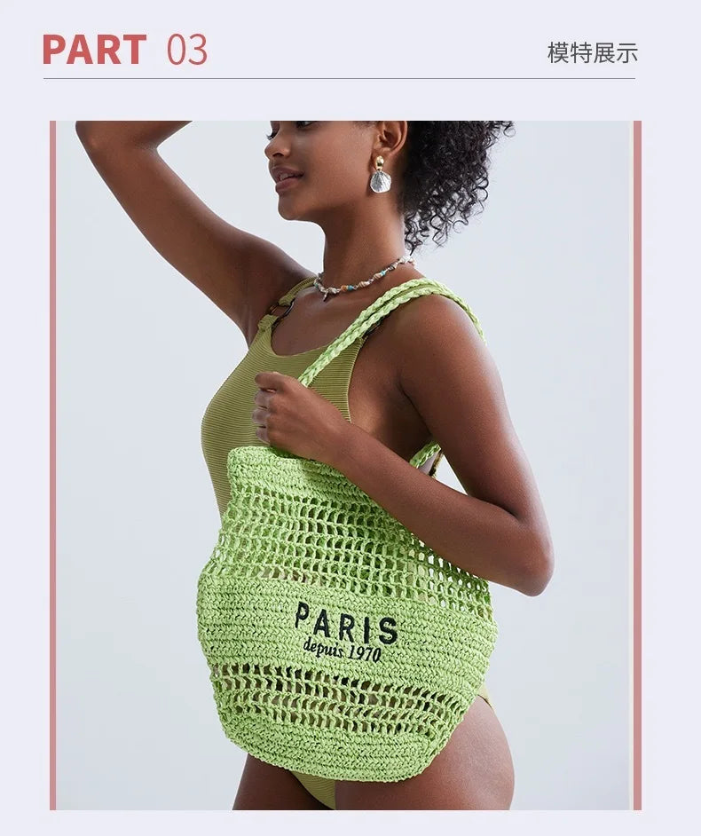 Women's Summer Beach Straw Style Tote Bag Handwoven Large Capacity Luxury Designer Travel Handbags Casual Portable Shoulder Bags