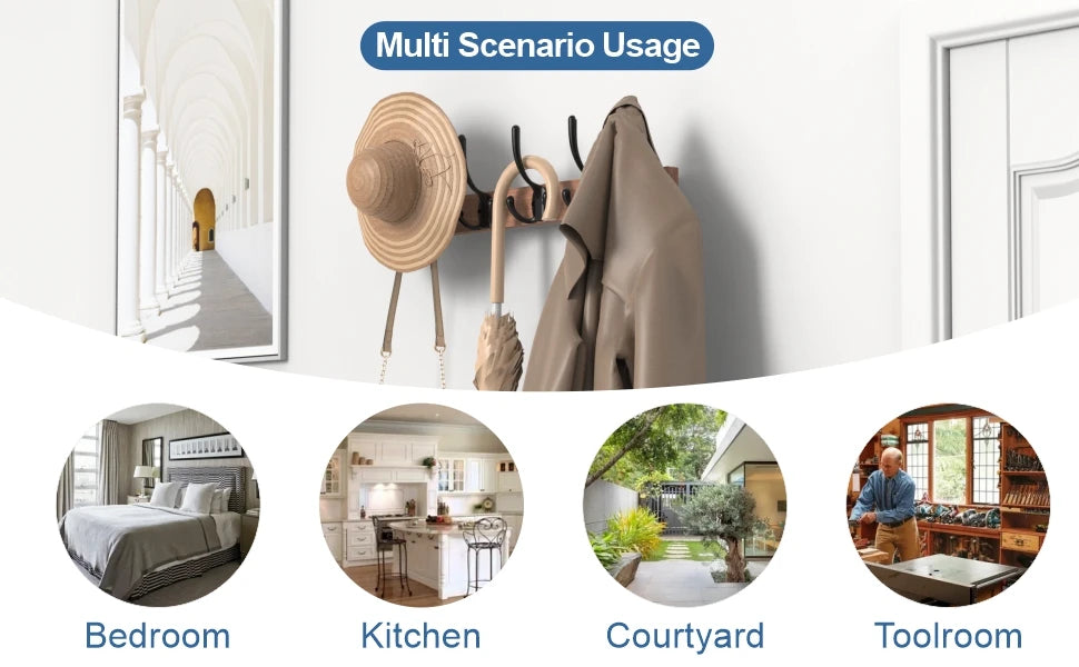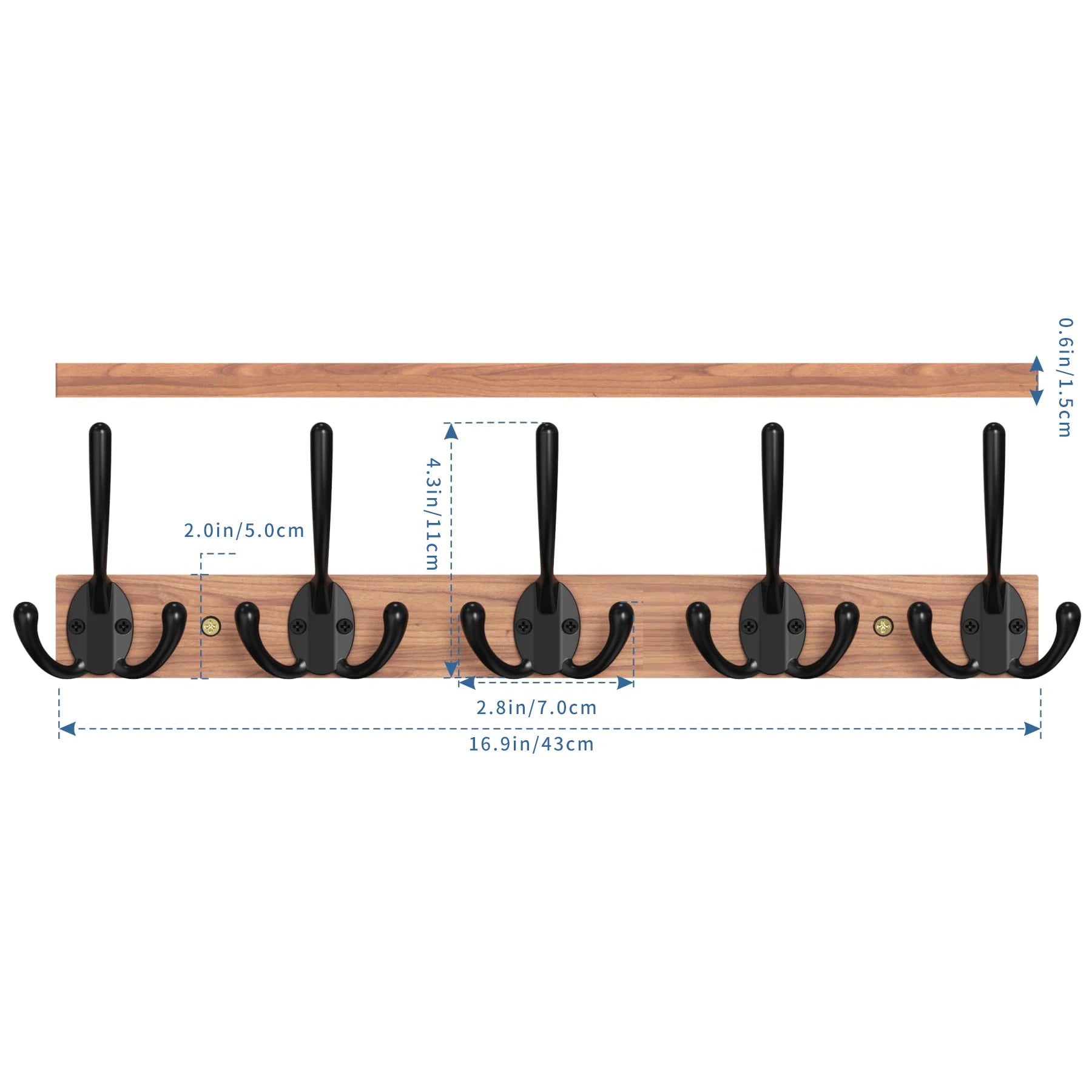 Wooden Coat Rack Wall Mount with 5 Hooks Home Decor Entryway Wall Hooks Coat Hanger for Hanging Towel Clothes Hat Key Holder