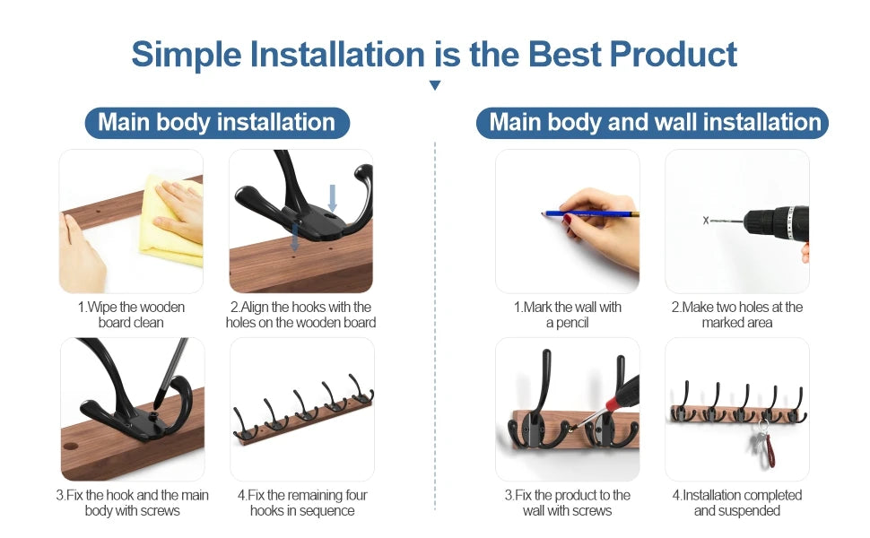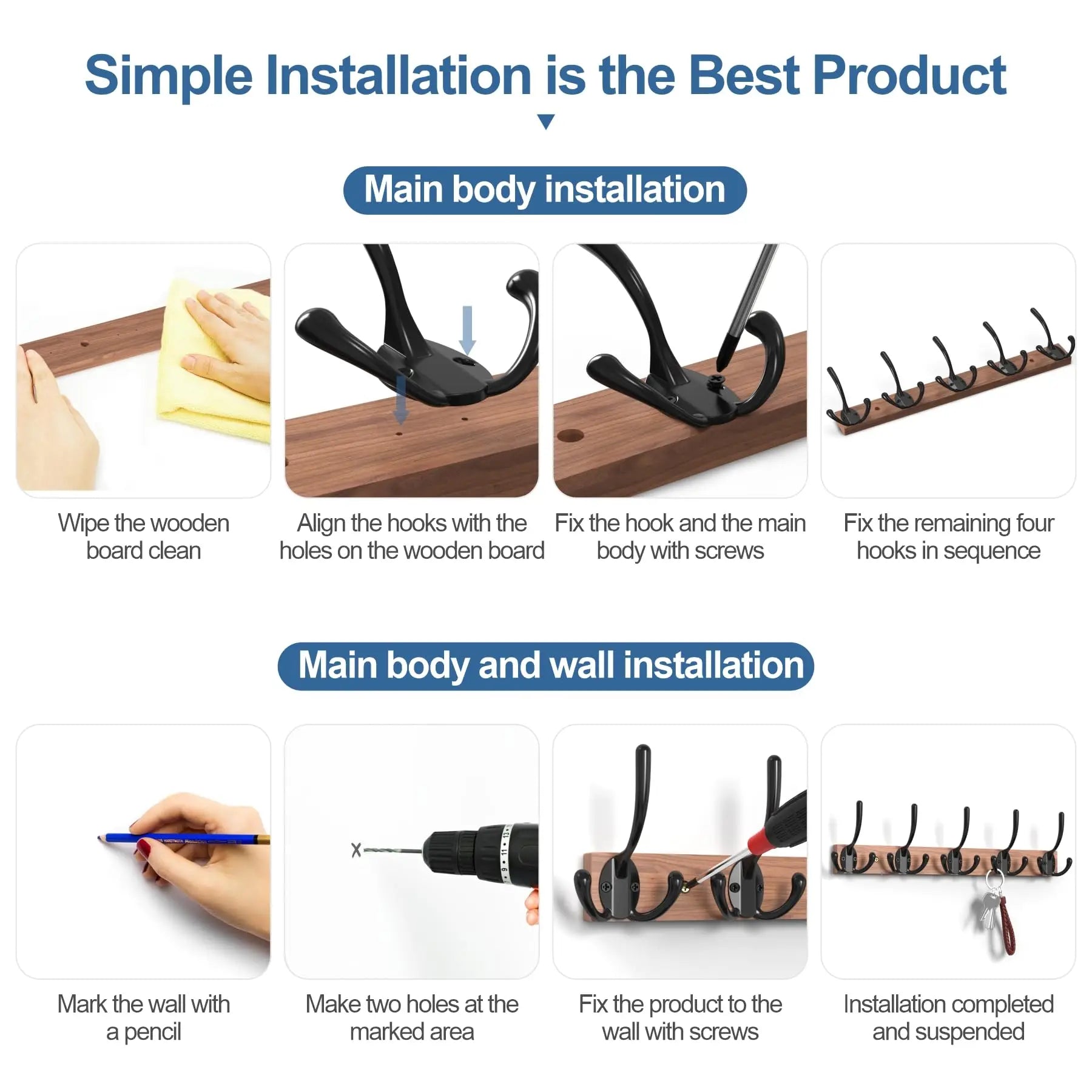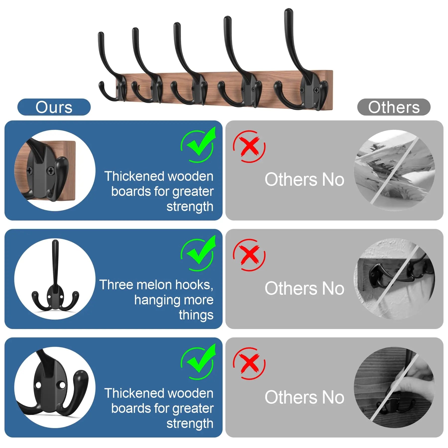 Wooden Coat Rack Wall Mount with 5 Hooks Home Decor Entryway Wall Hooks Coat Hanger for Hanging Towel Clothes Hat Key Holder