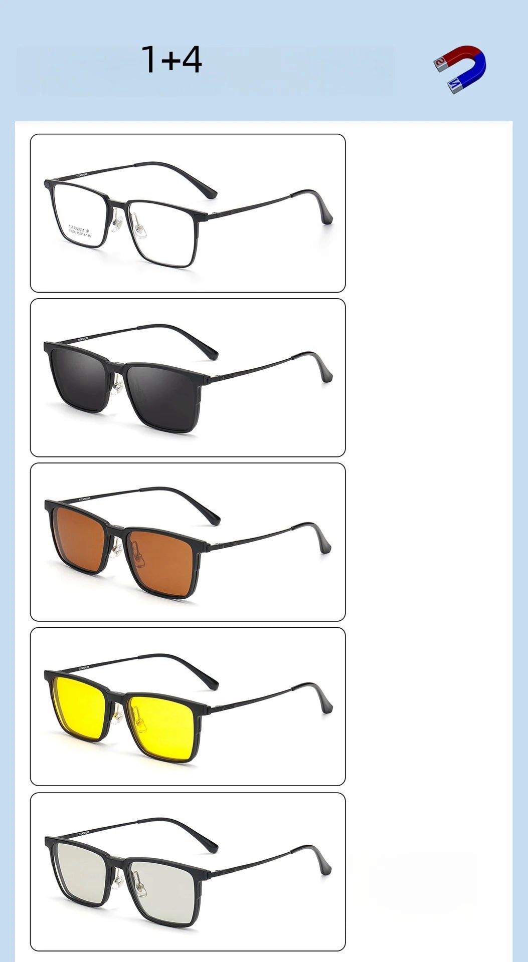 YIMARUILI Ultralight Polarized Magnetic Clip-On Glasses Men and Women TR90 Pure Titanium Optical Prescription Eyeglasses Frames