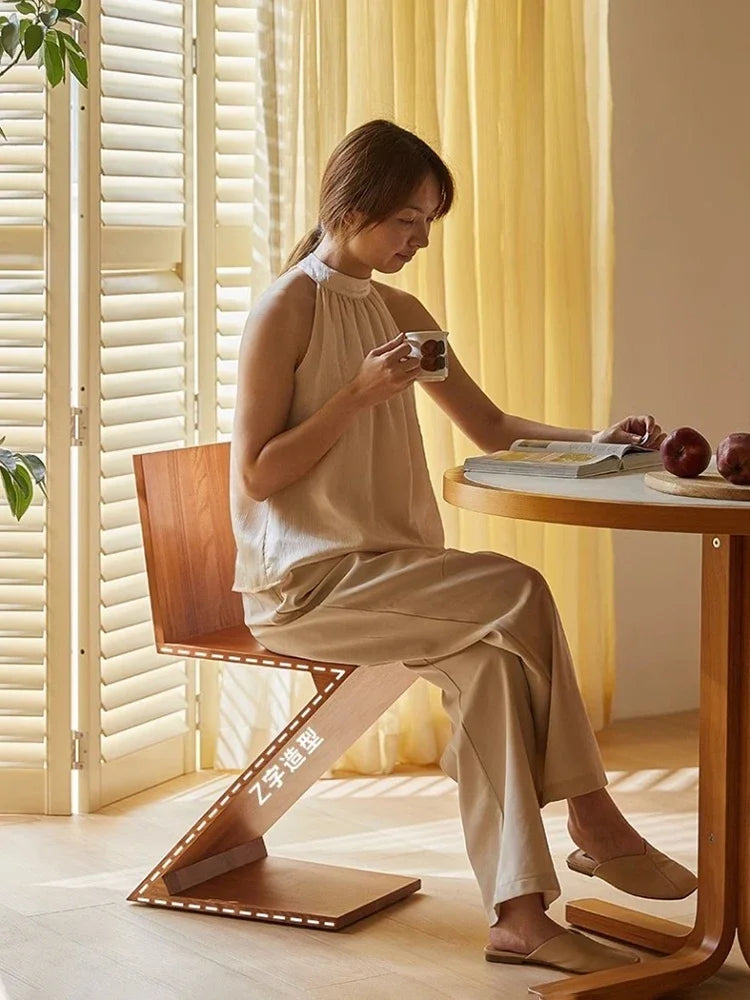 Zigzag Wood Chair Imitation Medieval Designer Z-shaped Dining Chair Creative Backrest Stool Home Nordic Chair for Bedroom
